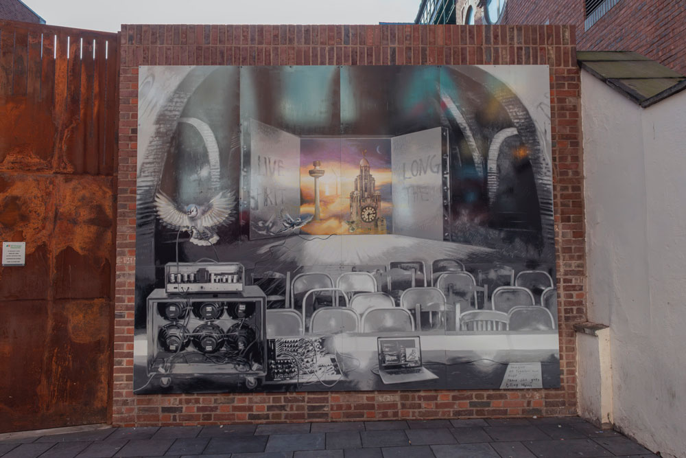 Wirral based artist Joseph Venning has designed a mural which is 15m wide and pictures 100 musicians as an audience, with Mathew St as the stage itself. The mural covers the exterior of SP Energy Networks’ substation wall, a site that has long been part of the fabric of Mathew Street and is just a few steps from The Cavern and Eric’s, two iconic music venues that have shaped music history both in Liverpool and across the world.
